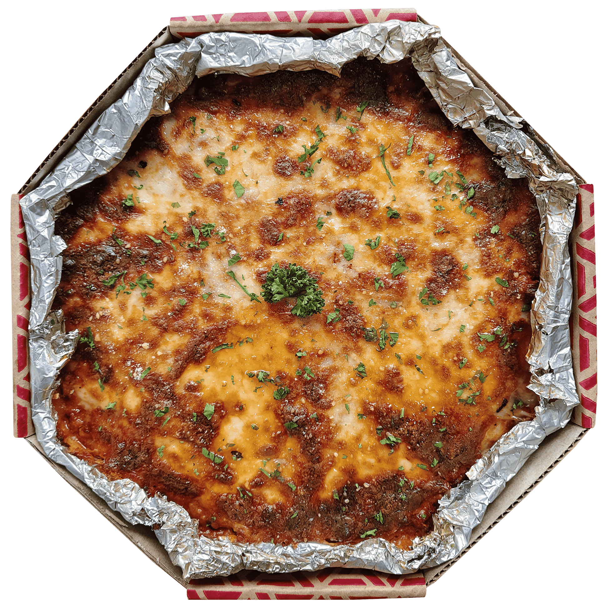 Baked pasta layered with tomato sauce, 100% ground beef, and mozzarella cheese.